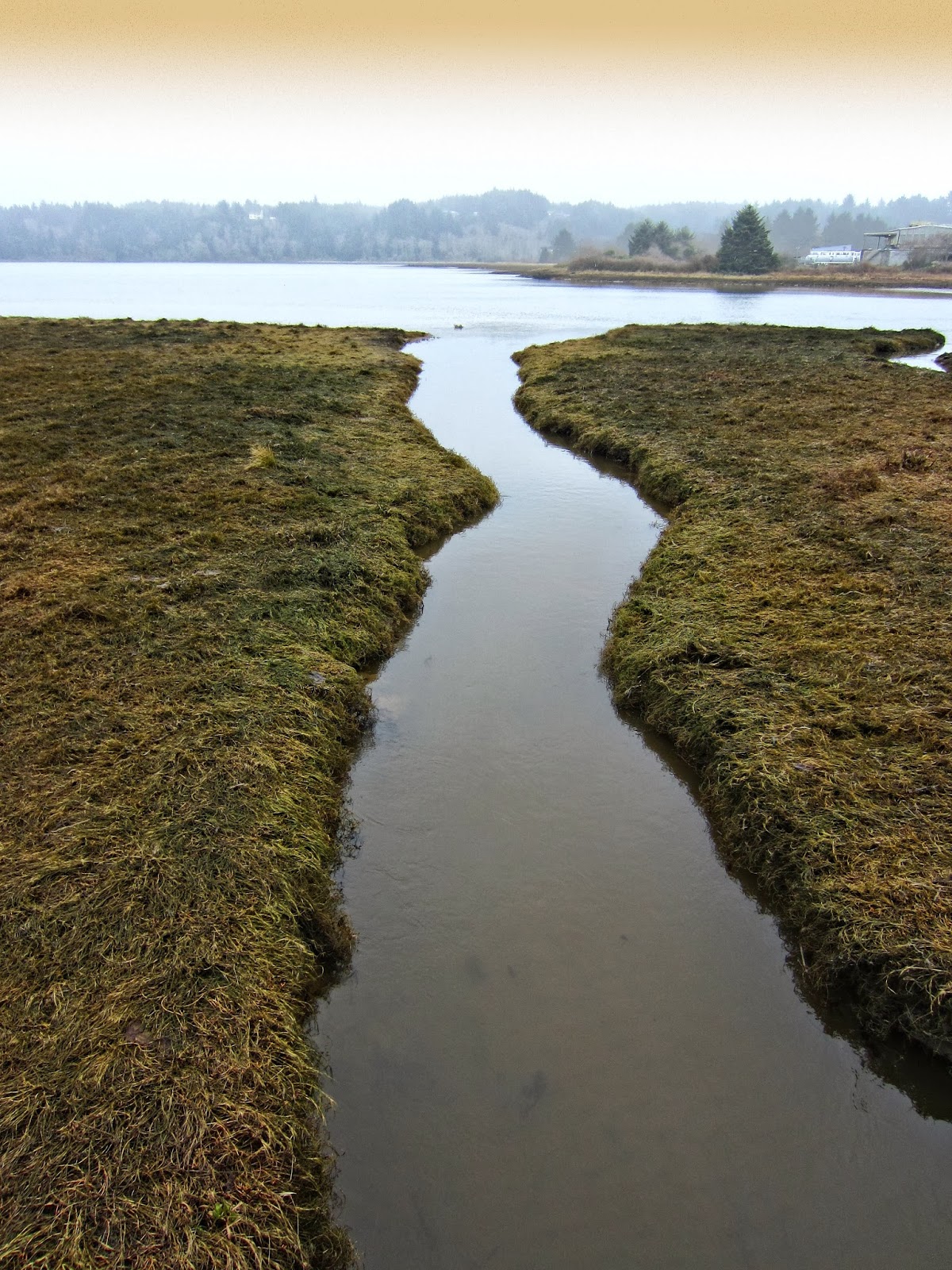 One of the coolest walks my wife and I have found is the "HMSC Estuary Trail" which follows around part of Yaquina Bay and, ends up crossing some wetlands, mudlands whatever you want to call them.